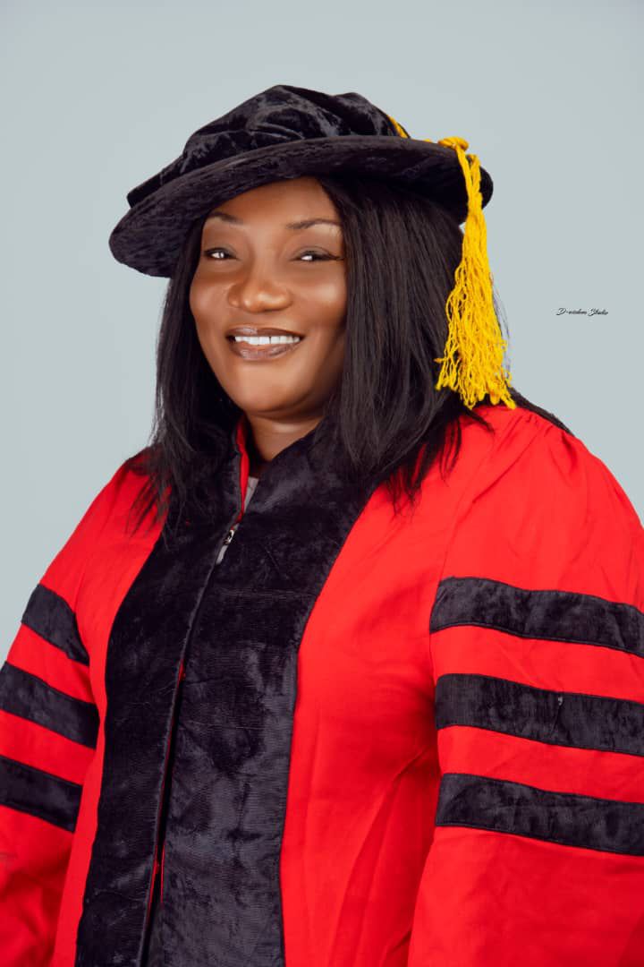 She further obtained a Master of Business Administration (MBA), Master of Laws (LL.M), and Doctor of Philosophy (PhD) in Law from Ambrose Alli University in 2009, 2018, and 2024 respectively.