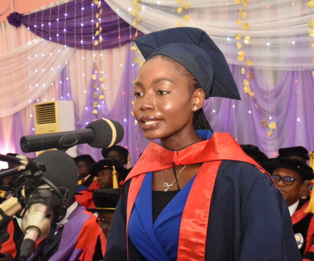 The Overall Best Graduating Student, Folake Racheal Omonitan of the Department of Biochemistry, who graduated with a CGPA of 4.79, attributed her success to focus and determination, urging her fellow graduates to approach the future with confidence and the belief that nothing is impossible.
