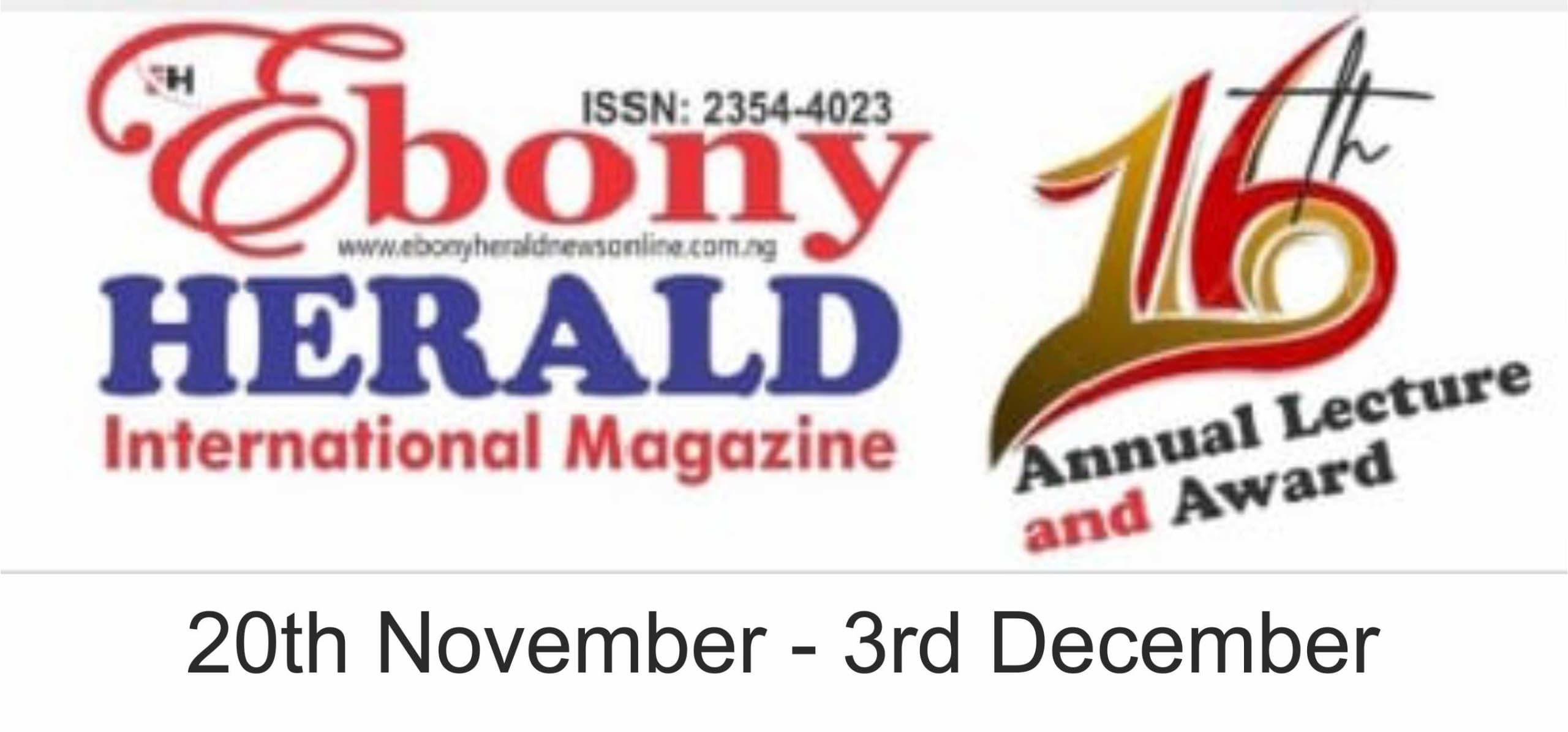 The 16th Annual Lecture and Awards of Ebony Herald International Magazine will kick off tomorrow, November 20, at the prestigious Pharmacy House, located behind Government House in Alagbaka, Akure, Ondo State.